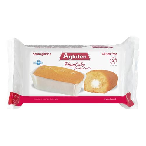 Aglutèn PlumCake farciti al latte Descrizione Plum Cake farciti al latte. Ingredienti Uovo intero, zucchero, margarina vegetale non idrogenata (olio di palma raffinato, acqua), farcitura al latte 15% [sciroppo di glucosio, saccarosio, latte intero pastorizzato 10%, - la percentuale di latte intero pastorizzato è riferita alla farcitura al latte-, grasso vegetale (palmisto, cocco, palma in proporzioni variabili), acqua, latte scremato in polvere 5% - la percentuale di latte scremato in polvere è riferita alla farcitura al latte-alcool etilico; gelificante: pectina-E1422; conservante: potassio sorbato; aromi; colorante: biossido d...